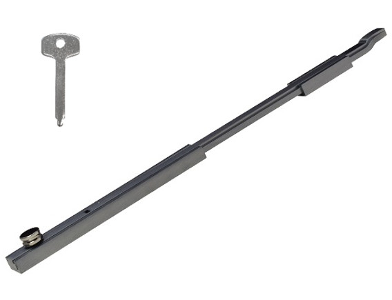 A face mounted slim-line 300mm long key lockable bolt