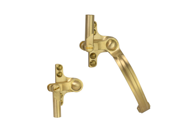 A Brass Premium Duplex Window Handle in non-locking and grub screw-locking