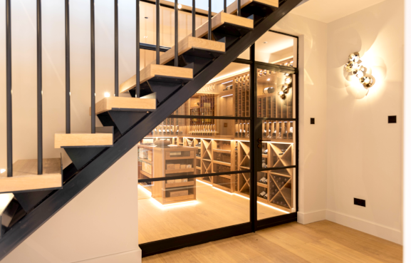 Marrying cosy and contemporary, this beautifully designed cellar is perfect for storing wine, champagne, and other magnificently crafted alcohol. Underlighting for the cellar provides a warm glow to the room for a relaxing atmosphere.