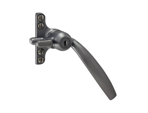 B158K09F - Curved Classic Key-Locking Window Handle on 4-hole Backplate